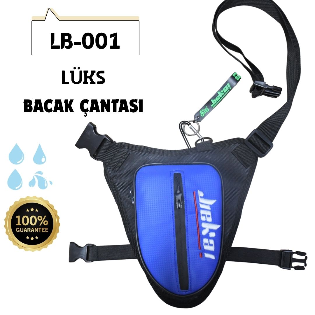 JİEKAİ LB-001 MOTORCU BACAK ÇANTASI * MAVİ KARBON KUMAŞ * BEYAZ NAKIŞ * ( ANAHTARLIK HEDİYE )