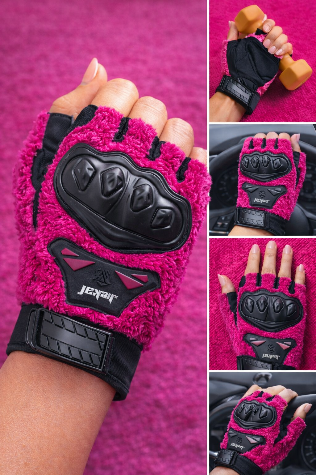 JK Peluşlu Yarım Eldiven – Fuşya Renk
