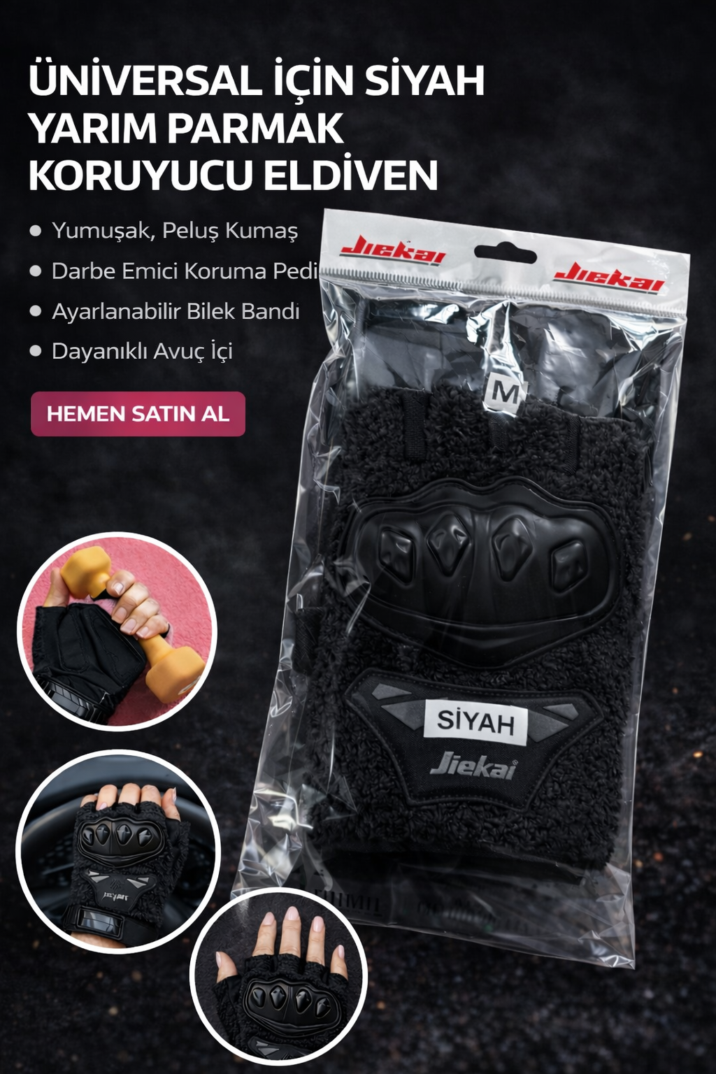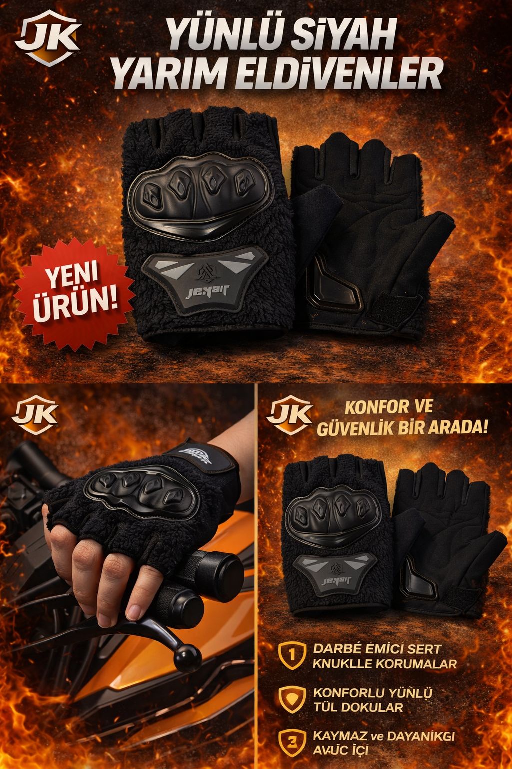 JK PELUŞLU YARIM ELDİVEN KORUMALI SİYAH RENK
