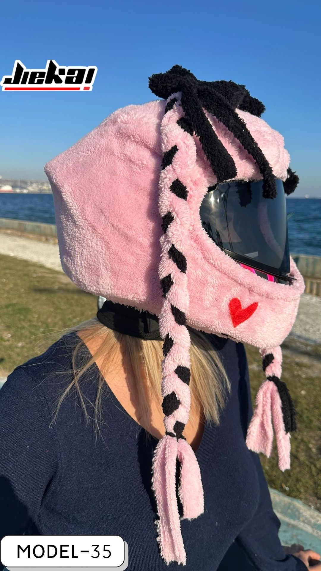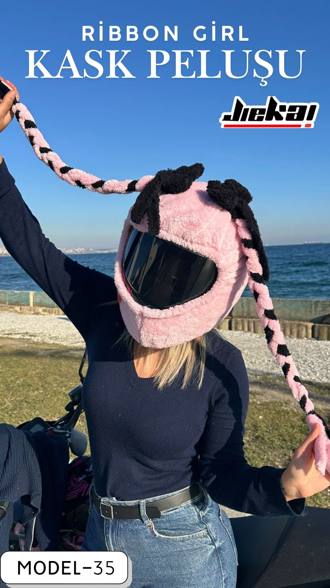 Ribbon Girl (Kurdele Kız) Kask Peluşu, JİEKAİ kalitesiyle üretilmiş olup konforu, şıklığı ve sevimli tasarımı bir arada arayan motosiklet kullanıcıları için ideal bir üründür.