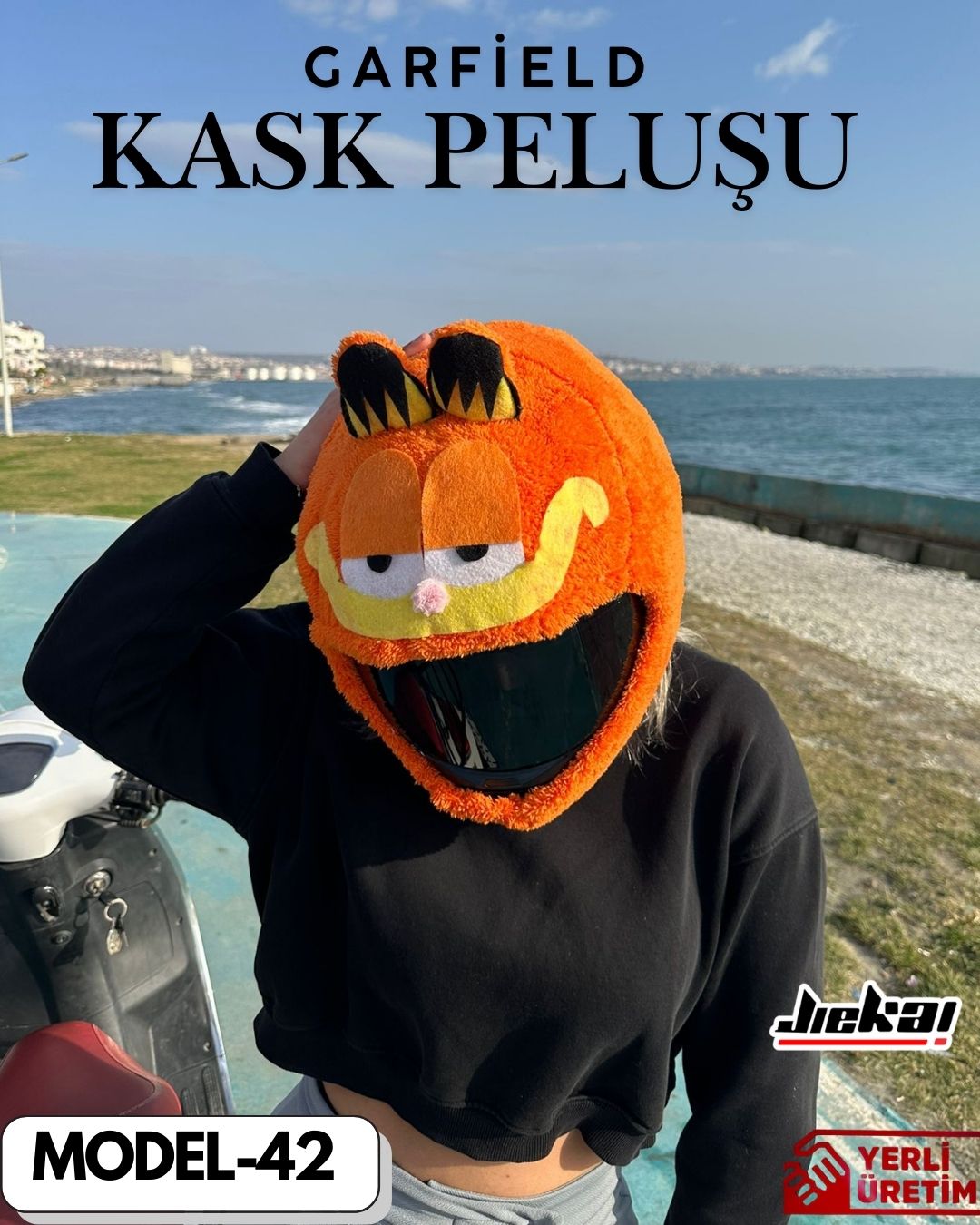 Garfield Kask Peluşu, herkesin tanıdığı o tembel ama karizmatik kedi havasını kaskına taşıyor! Sevimli görünümü, dikkat çeken turuncu tonları ve karakteristik ifadesiyle trafikte fark edilmek isteyenlerin yeni favorisi olmaya aday.
