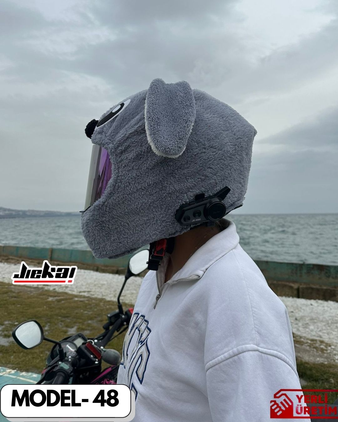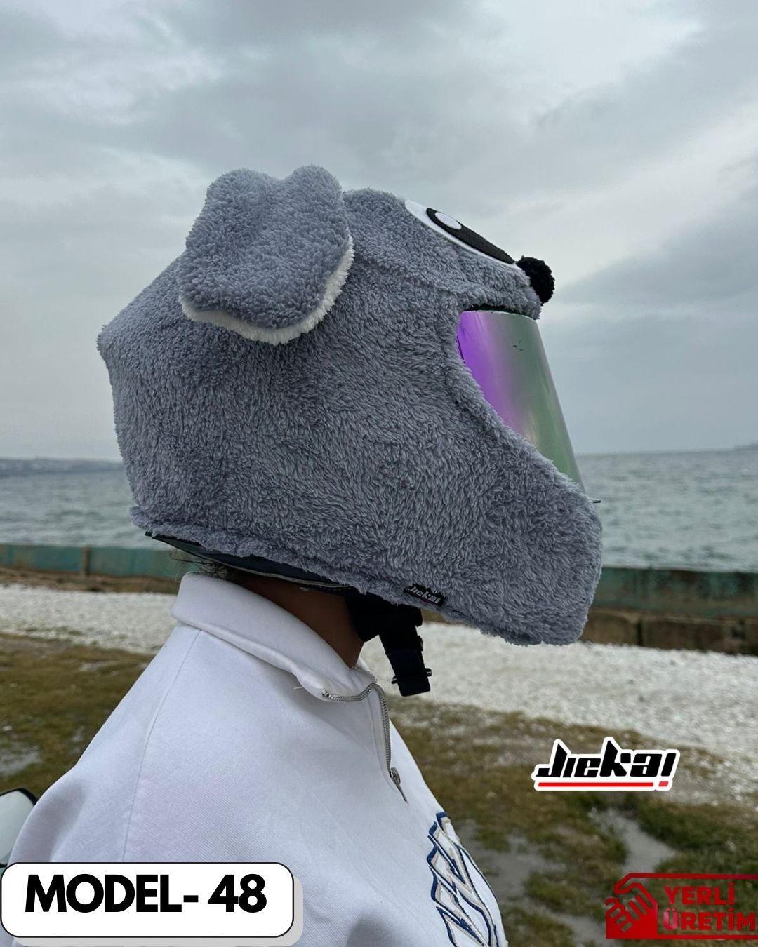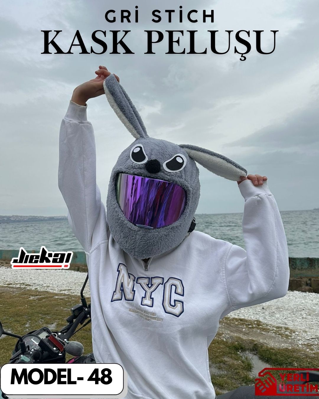 Yeni gelen MODEL-47 Gri Stich Kask Peluşu, motosiklet kullanıcıları için kaskına eğlenceli, dikkat çekici ve tarz bir görünüm kazandırmak isteyenlere özel olarak tasarlanmıştır. Sevimli Stich karakterini andıran gri tasarımı sayesinde hem günlük kullanımda hem de sosyal sürüşlerde fark yaratır.