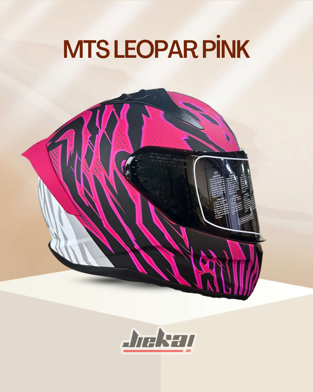 MTS markasının özel tasarımı Leopar Pink kask, güçlü görünümüyle dikkat çekmek isteyen sürücüler için üretildi.
